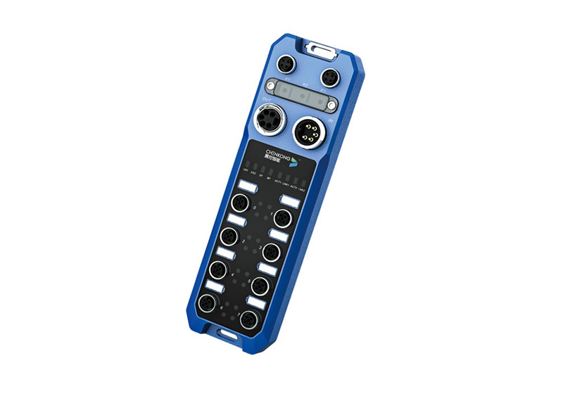 具有八个多功能主端口的工业级IO-Link主站模块CK-GW208-PN。IP67等级的现场总线模块是分布式安装中的重要组件,取代了复杂的布线和昂贵的接线盒,实现通信网络到现场的“最后几英尺”技术标准。