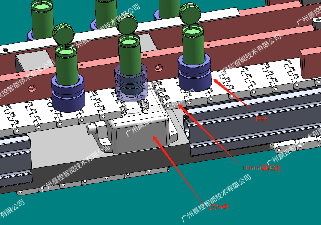 每一个锂电池雏形在入壳后都会固定在托杯,而托杯上固定有玻璃管标签,玻璃管标签数据与信息系统内部记录对应,在托杯带着锂电池经由流水线转到节点时,机械设备将会感应到标签,并且上传数据,经由信息系统下达指令使得智能机械人进行下一步工艺。